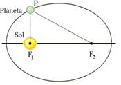 "As órbitas que os planetas descrevem ao redor do Sol são elípticas, com o Sol ocupando um dos focos da elipse"